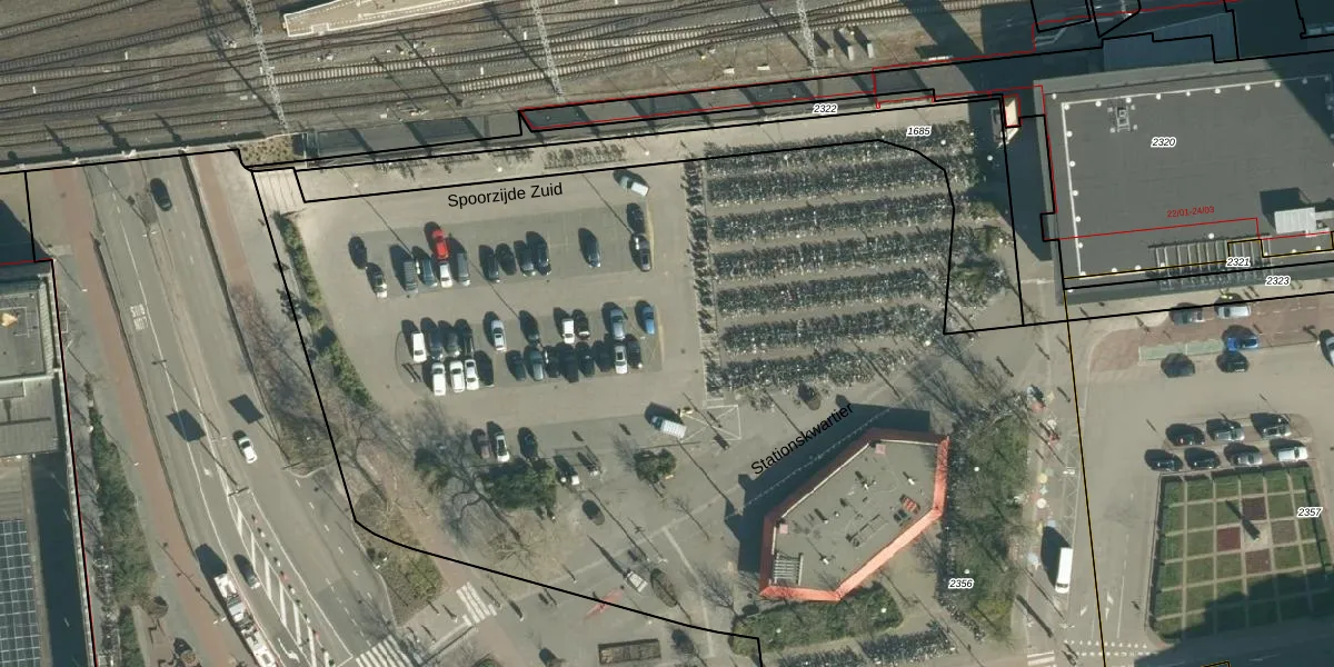 Het perceel waarop Stationskwartier 40-161 staat heeft een oppervlakte van 1,4 ha. Dit is een zeer groot perceel. De perceeloppervlakte wordt geregistreerd door het Kadaster. Gedetailleerde informatie over de maten van dit perceel kunt u vinden in het rapport Kadastrale kaart met maatvoering van Stationskwartier 40-161.