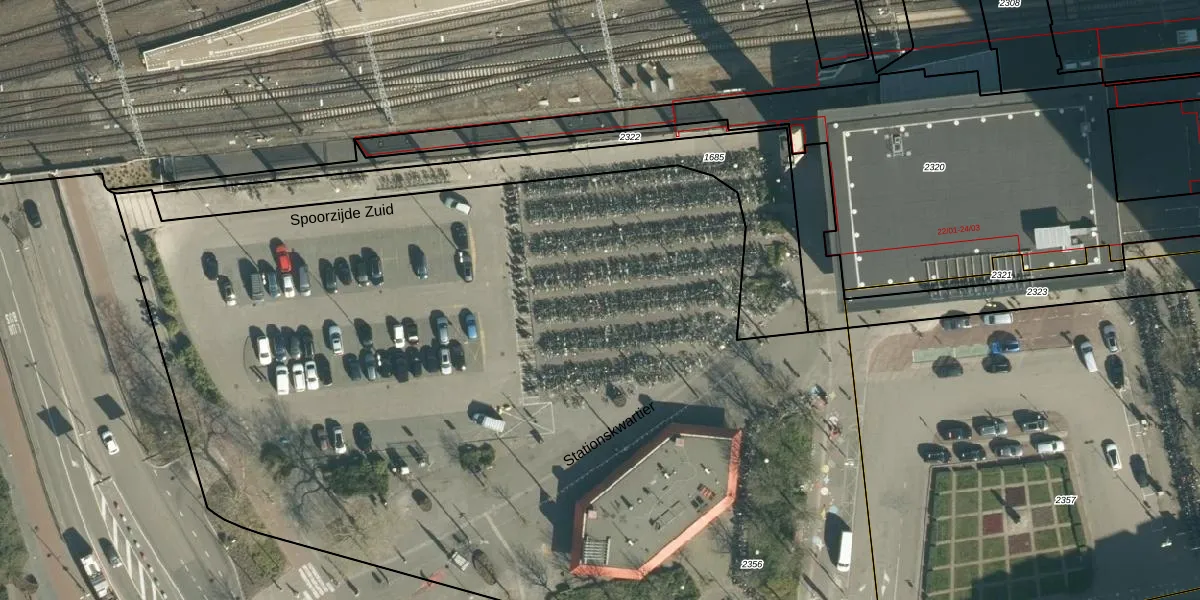 Het perceel waarop Stationskwartier 40-173 staat heeft een oppervlakte van 1,4 ha. Dit is een zeer groot perceel. De perceeloppervlakte wordt geregistreerd door het Kadaster. Gedetailleerde informatie over de maten van dit perceel kunt u vinden in het rapport Kadastrale kaart met maatvoering van Stationskwartier 40-173.