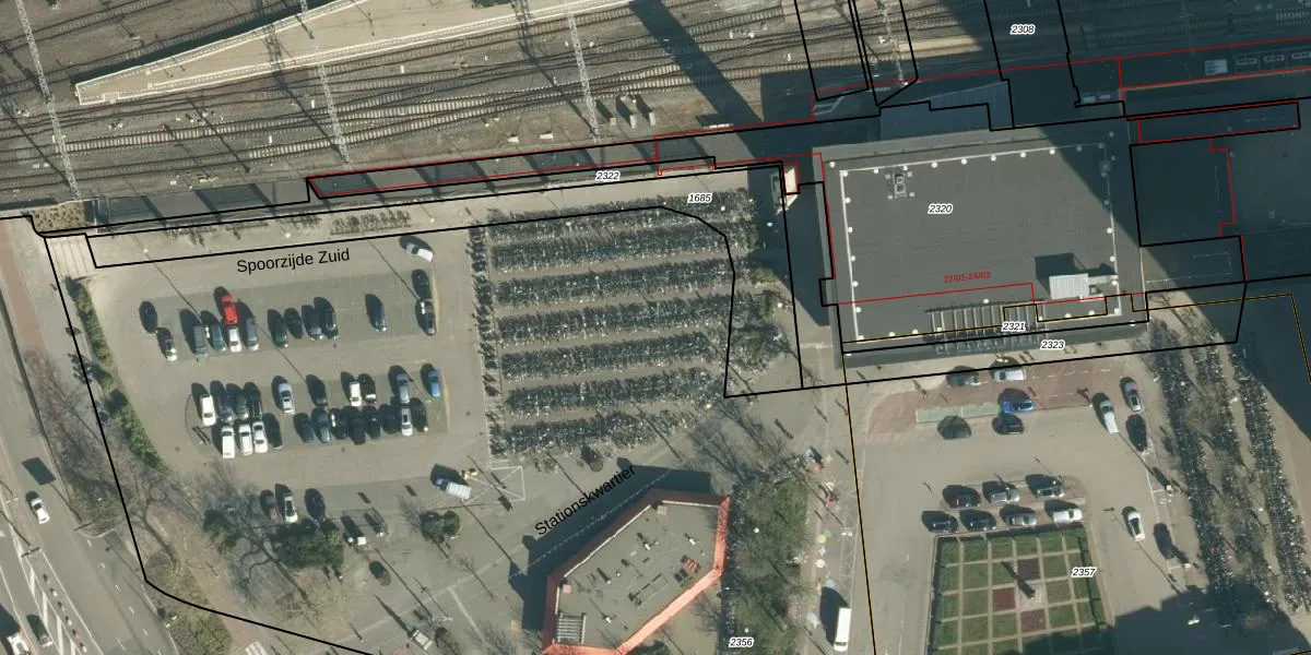 Het perceel waarop Stationskwartier 40-180 staat heeft een oppervlakte van 1,4 ha. Dit is een zeer groot perceel. De perceeloppervlakte wordt geregistreerd door het Kadaster. Gedetailleerde informatie over de maten van dit perceel kunt u vinden in het rapport Kadastrale kaart met maatvoering van Stationskwartier 40-180.