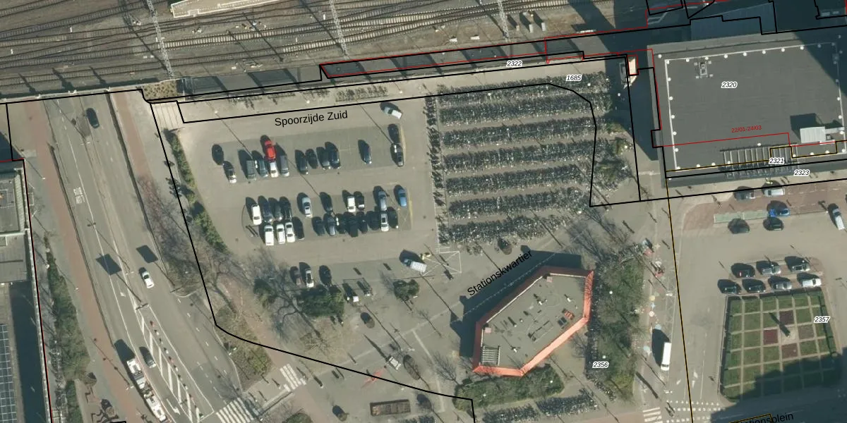 Het perceel waarop Stationskwartier 40-202 staat heeft een oppervlakte van 1,4 ha. Dit is een zeer groot perceel. De perceeloppervlakte wordt geregistreerd door het Kadaster. Gedetailleerde informatie over de maten van dit perceel kunt u vinden in het rapport Kadastrale kaart met maatvoering van Stationskwartier 40-202.