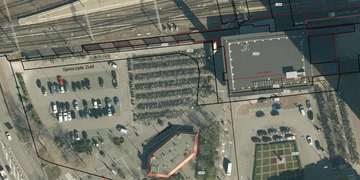 Het perceel waarop Stationskwartier 40-240 staat heeft een oppervlakte van 1,4 ha. Dit is een zeer groot perceel. De perceeloppervlakte wordt geregistreerd door het Kadaster. Gedetailleerde informatie over de maten van dit perceel kunt u vinden in het rapport Kadastrale kaart met maatvoering van Stationskwartier 40-240.