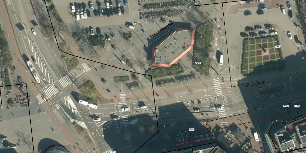 Het perceel waarop Stationskwartier 41-106 staat heeft een oppervlakte van 1,4 ha. Dit is een zeer groot perceel. De perceeloppervlakte wordt geregistreerd door het Kadaster. Gedetailleerde informatie over de maten van dit perceel kunt u vinden in het rapport Kadastrale kaart met maatvoering van Stationskwartier 41-106.