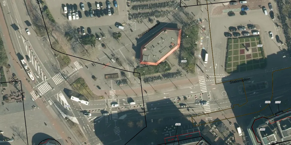 Het perceel waarop Stationskwartier 41-107 staat heeft een oppervlakte van 1,4 ha. Dit is een zeer groot perceel. De perceeloppervlakte wordt geregistreerd door het Kadaster. Gedetailleerde informatie over de maten van dit perceel kunt u vinden in het rapport Kadastrale kaart met maatvoering van Stationskwartier 41-107.