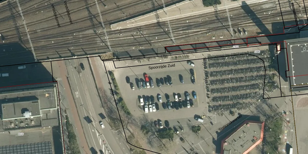 Het perceel waarop Stationskwartier 51-043 staat heeft een oppervlakte van 1,4 ha. Dit is een zeer groot perceel. De perceeloppervlakte wordt geregistreerd door het Kadaster. Gedetailleerde informatie over de maten van dit perceel kunt u vinden in het rapport Kadastrale kaart met maatvoering van Stationskwartier 51-043.