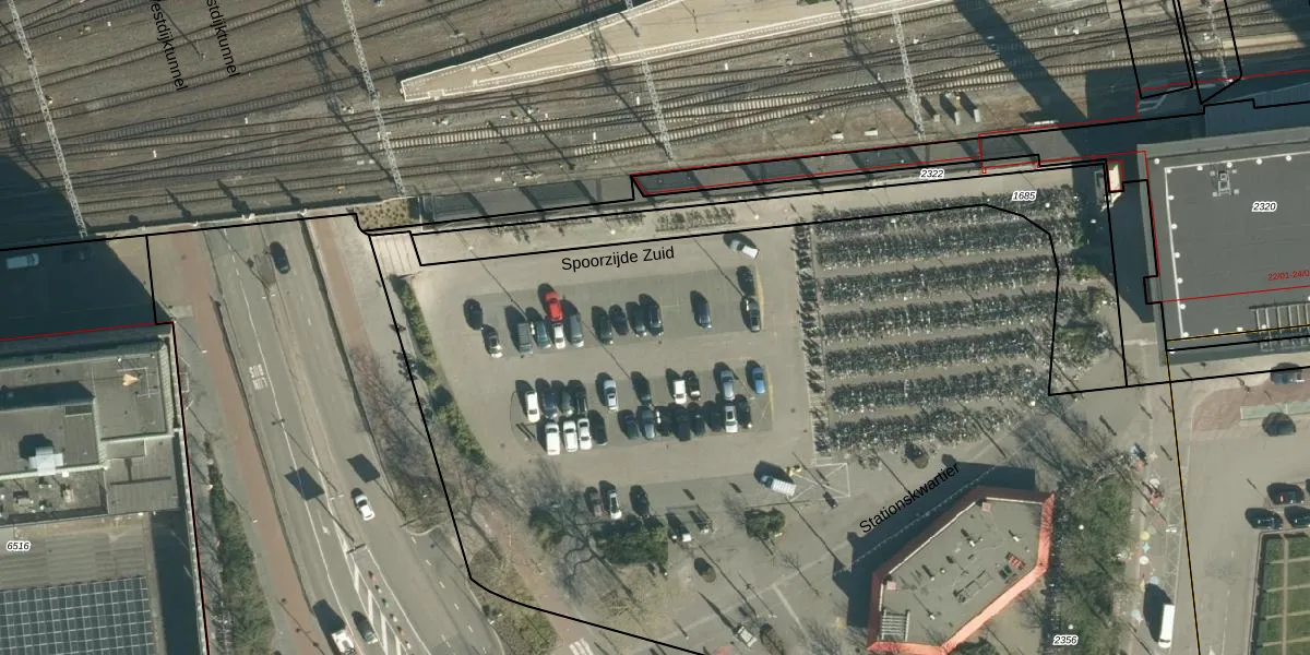 Het perceel waarop Stationskwartier 51-174 staat heeft een oppervlakte van 1,4 ha. Dit is een zeer groot perceel. De perceeloppervlakte wordt geregistreerd door het Kadaster. Gedetailleerde informatie over de maten van dit perceel kunt u vinden in het rapport Kadastrale kaart met maatvoering van Stationskwartier 51-174.