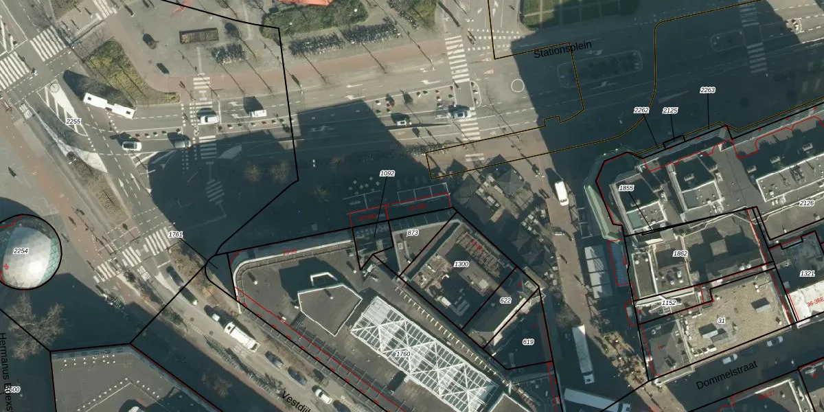 Het perceel waarop Stationsplein 15 staat heeft een oppervlakte van 1,4 ha. Dit is een zeer groot perceel. De perceeloppervlakte wordt geregistreerd door het Kadaster. Gedetailleerde informatie over de maten van dit perceel kunt u vinden in het rapport Kadastrale kaart met maatvoering van Stationsplein 15.