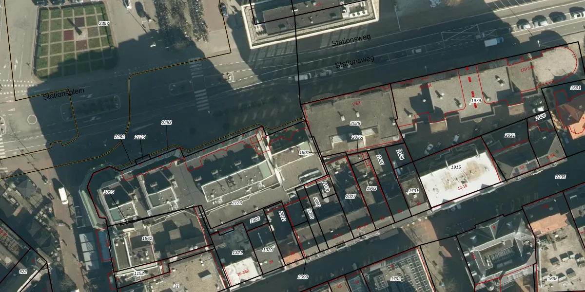 Het perceel waarop Stationsplein 26 staat heeft een oppervlakte van 1773 m². Dit is een zeer groot perceel. De perceeloppervlakte wordt geregistreerd door het Kadaster. Gedetailleerde informatie over de maten van dit perceel kunt u vinden in het rapport Kadastrale kaart met maatvoering van Stationsplein 26.