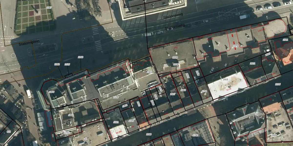 Het perceel waarop Stationsplein 32 staat heeft een oppervlakte van 1773 m². Dit is een zeer groot perceel. De perceeloppervlakte wordt geregistreerd door het Kadaster. Gedetailleerde informatie over de maten van dit perceel kunt u vinden in het rapport Kadastrale kaart met maatvoering van Stationsplein 32.