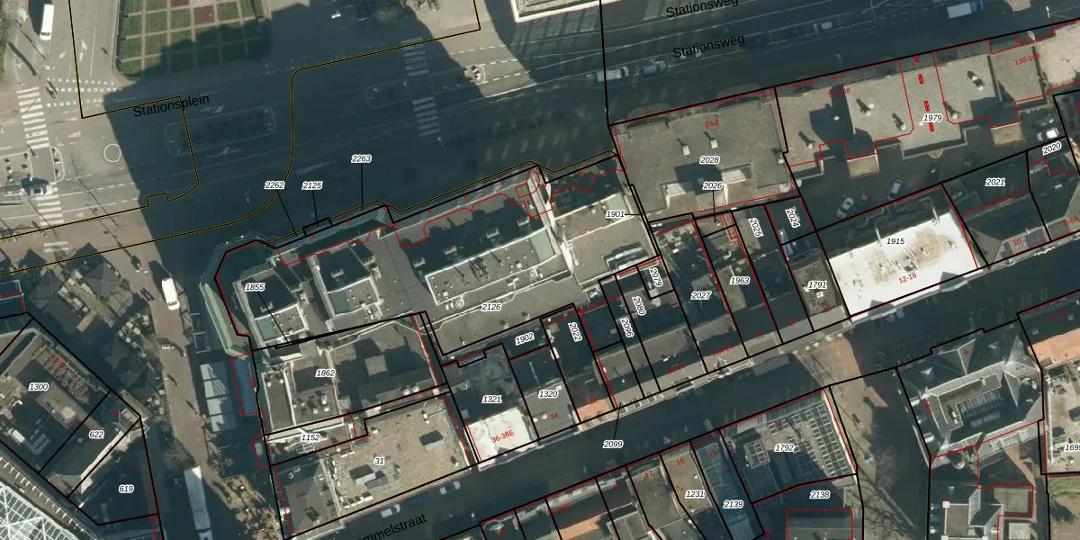 Het perceel waarop Stationsplein 47 staat heeft een oppervlakte van 1773 m². Dit is een zeer groot perceel. De perceeloppervlakte wordt geregistreerd door het Kadaster. Gedetailleerde informatie over de maten van dit perceel kunt u vinden in het rapport Kadastrale kaart met maatvoering van Stationsplein 47.