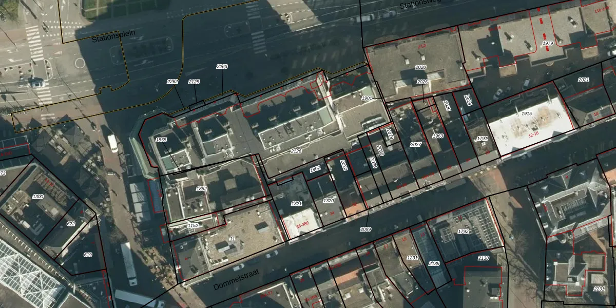 Het perceel waarop Stationsplein 55 staat heeft een oppervlakte van 1773 m². Dit is een zeer groot perceel. De perceeloppervlakte wordt geregistreerd door het Kadaster. Gedetailleerde informatie over de maten van dit perceel kunt u vinden in het rapport Kadastrale kaart met maatvoering van Stationsplein 55.