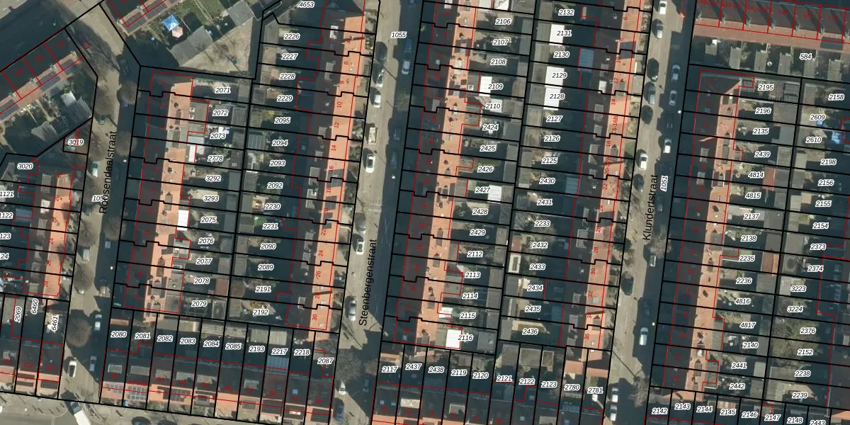 Gebruik de zoekbalk of klik op een perceel voor informatie over de adressen binnen dit perceel.