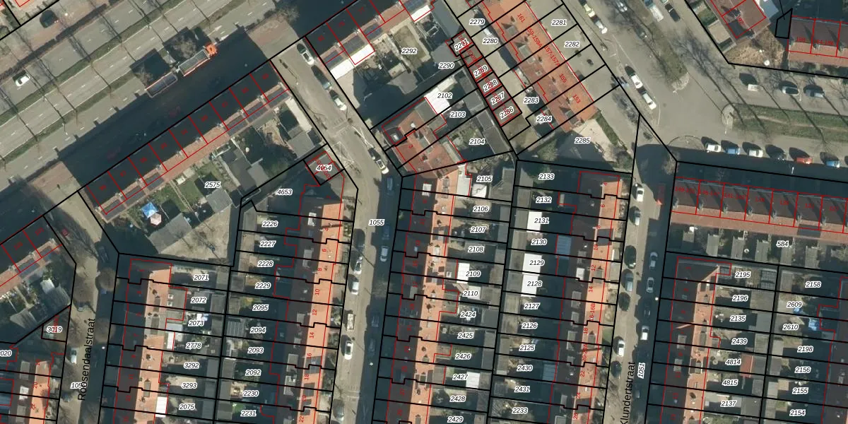 Gebruik de zoekbalk of klik op een perceel voor informatie over de adressen binnen dit perceel.