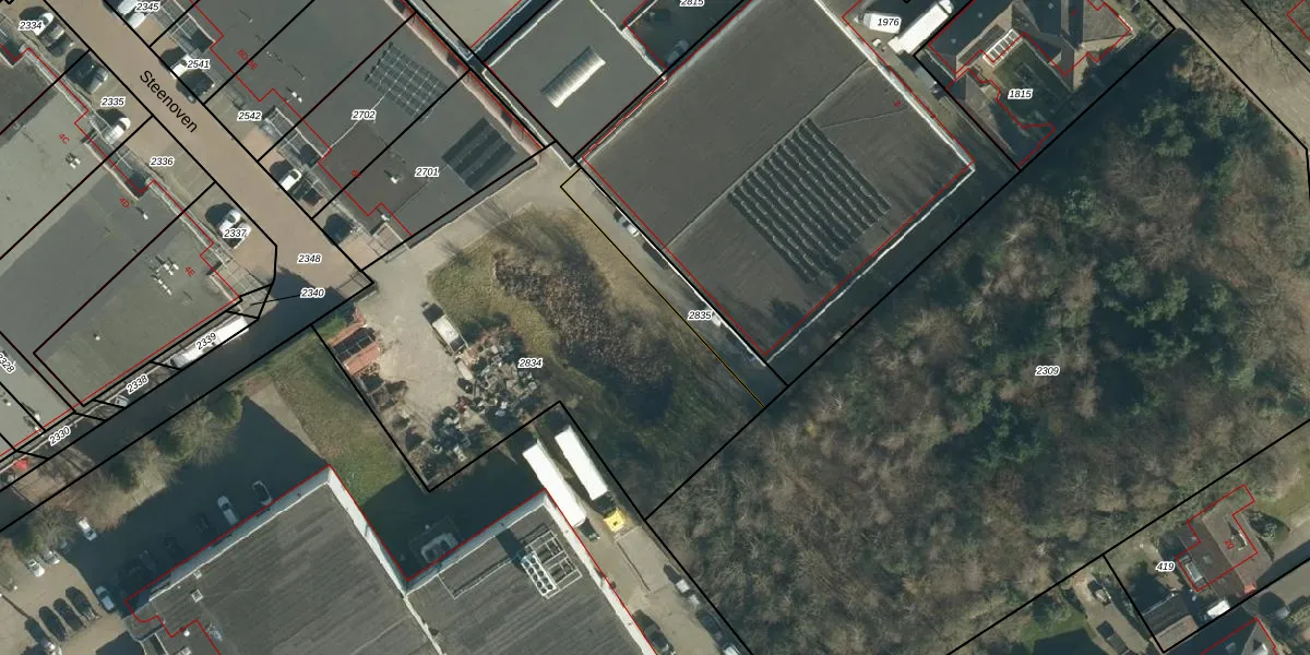 Het perceel waarop Steenoven 6-M staat heeft een oppervlakte van 1977 m². Dit is een zeer groot perceel. De perceeloppervlakte wordt geregistreerd door het Kadaster. Gedetailleerde informatie over de maten van dit perceel kunt u vinden in het rapport Kadastrale kaart met maatvoering van Steenoven 6-M.