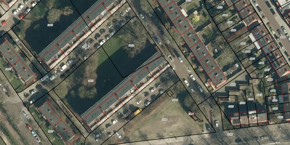 Het perceel waarop het adres ligt is WSL01-G-2855. De afkorting 'WSL01' staat voor kadastrale gemeente Woensel. De oppervlakte van het perceel is 2117 m². Dat is groter dan gemiddeld in Woensel, waar de gemiddelde perceeloppervlakte op 1039,13 m² ligt. De grootste perceeloppervlakte in de kadastrale gemeente is 74,9 ha. De kleinste oppervlakte bedraagt 0 m². Op het perceel liggen in totaal 40 adressen. De huidige grenzen van het perceel zijn digitaal in de Basisregistratie Kadaster (BRK) geregistreerd op 15-05-2007.