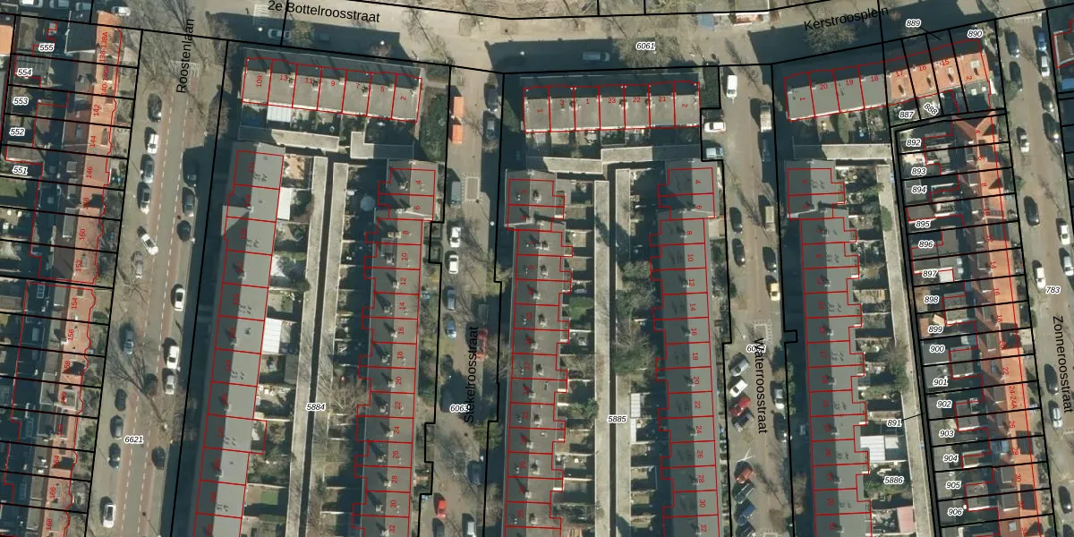 Stekelroosstraat 9 is gelegen op kadastraal perceel STM00D5885. Deze kadastrale aanduiding is uniek en wordt gebruikt door het Kadaster om eigendomsrechten en andere zakelijke rechten vast te leggen. Het perceel maakt onderdeel uit van de kadastrale gemeente Stratum.