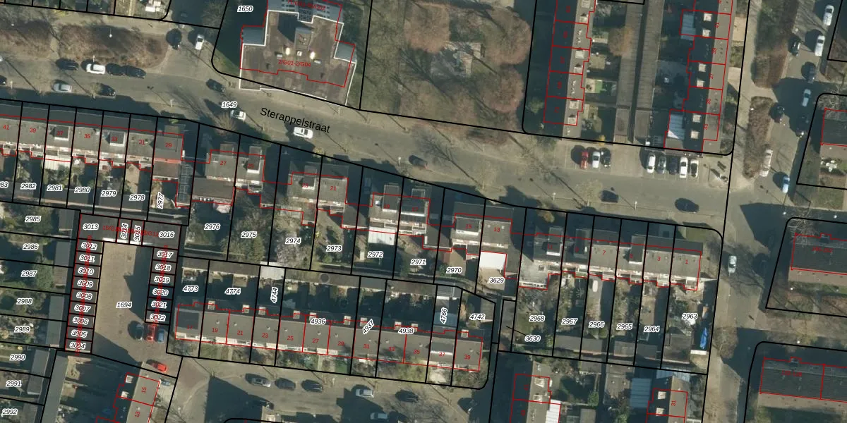 Sterappelstraat 17 is gelegen op kadastraal perceel WSL01C2971. Deze kadastrale aanduiding is uniek en wordt gebruikt door het Kadaster om eigendomsrechten en andere zakelijke rechten vast te leggen. Het perceel maakt onderdeel uit van de kadastrale gemeente Woensel.