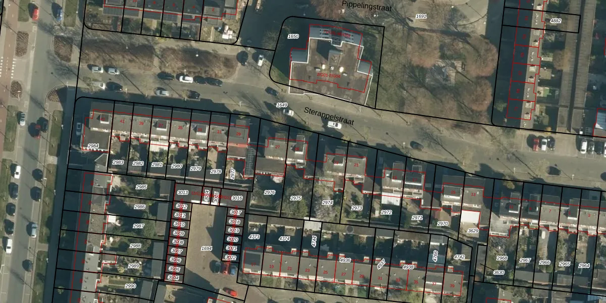 Sterappelstraat 25 is gelegen op kadastraal perceel WSL01C2975. Deze kadastrale aanduiding is uniek en wordt gebruikt door het Kadaster om eigendomsrechten en andere zakelijke rechten vast te leggen. Het perceel maakt onderdeel uit van de kadastrale gemeente Woensel.