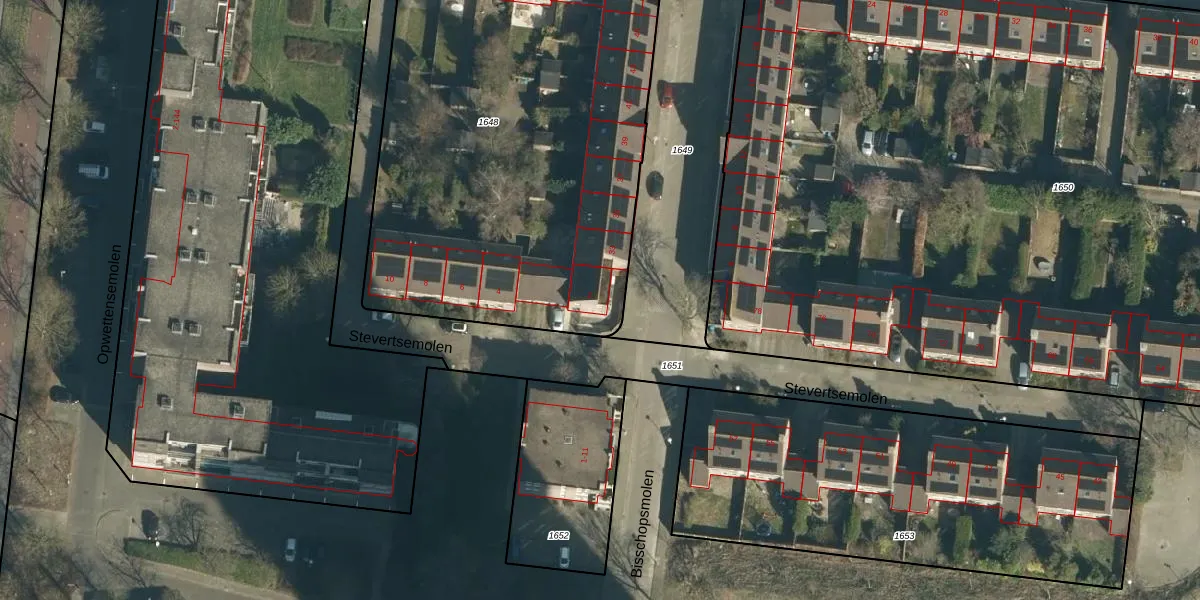 Het perceel waarop Stevertsemolen 2 staat heeft een oppervlakte van 2878 m². Dit is een zeer groot perceel. De perceeloppervlakte wordt geregistreerd door het Kadaster. Gedetailleerde informatie over de maten van dit perceel kunt u vinden in het rapport Kadastrale kaart met maatvoering van Stevertsemolen 2.