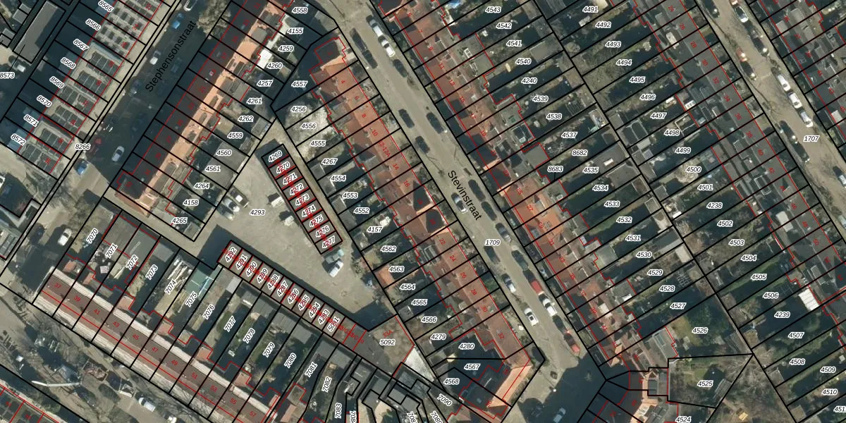 Stevinstraat 18 is gelegen op kadastraal perceel WSL01G4157. Deze kadastrale aanduiding is uniek en wordt gebruikt door het Kadaster om eigendomsrechten en andere zakelijke rechten vast te leggen. Het perceel maakt onderdeel uit van de kadastrale gemeente Woensel.