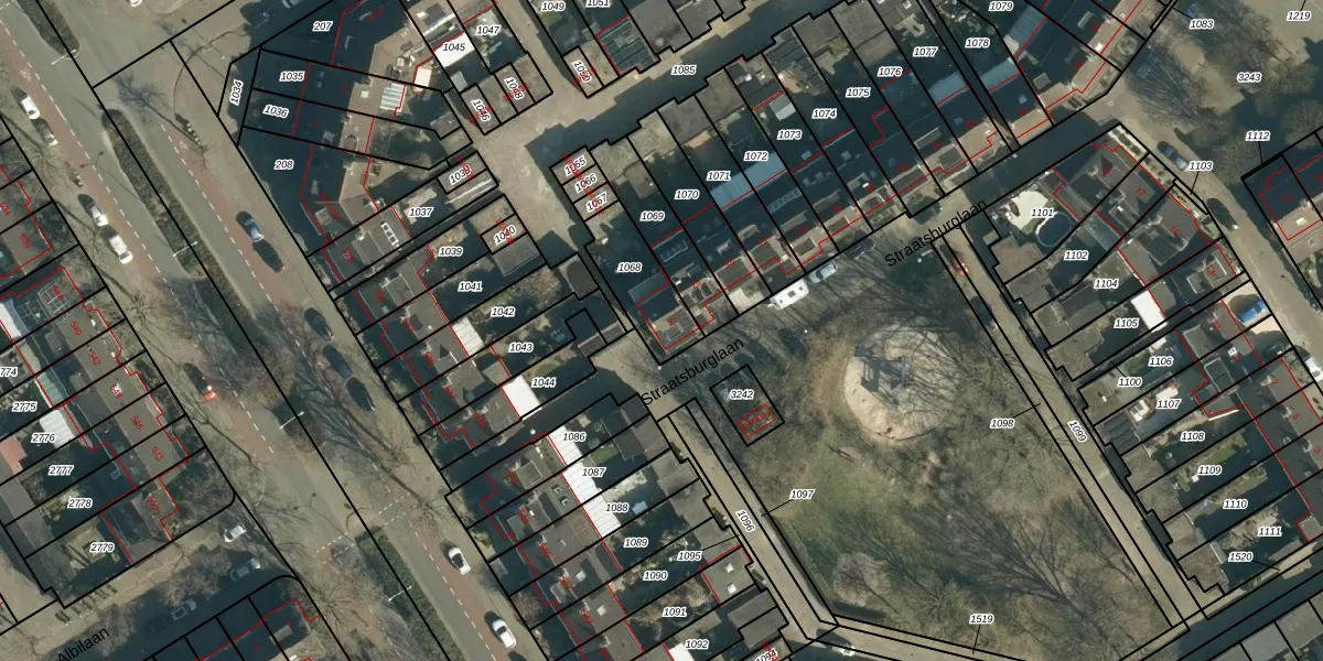 Het perceel waarop Straatsburglaan 21 staat heeft een oppervlakte van 198 m². Dit is een middelgroot perceel. De perceeloppervlakte wordt geregistreerd door het Kadaster. Gedetailleerde informatie over de maten van dit perceel kunt u vinden in het rapport Kadastrale kaart met maatvoering van Straatsburglaan 21.