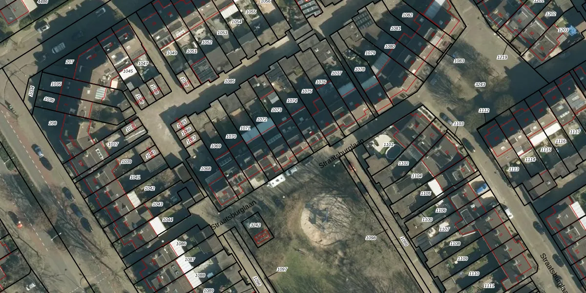 Het perceel waarop Straatsburglaan 31 staat heeft een oppervlakte van 195 m². Dit is een middelgroot perceel. De perceeloppervlakte wordt geregistreerd door het Kadaster. Gedetailleerde informatie over de maten van dit perceel kunt u vinden in het rapport Kadastrale kaart met maatvoering van Straatsburglaan 31.