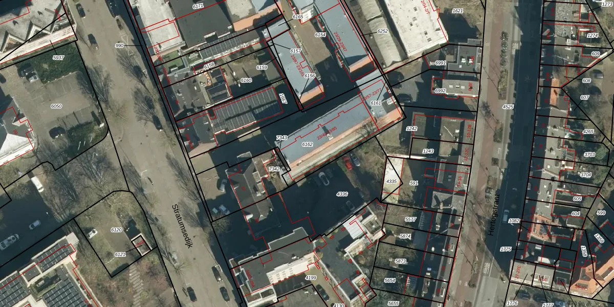 Stratumsedijk 23-85 is gelegen op kadastraal perceel STM00E6162. Deze kadastrale aanduiding is uniek en wordt gebruikt door het Kadaster om eigendomsrechten en andere zakelijke rechten vast te leggen. Het perceel maakt onderdeel uit van de kadastrale gemeente Stratum.