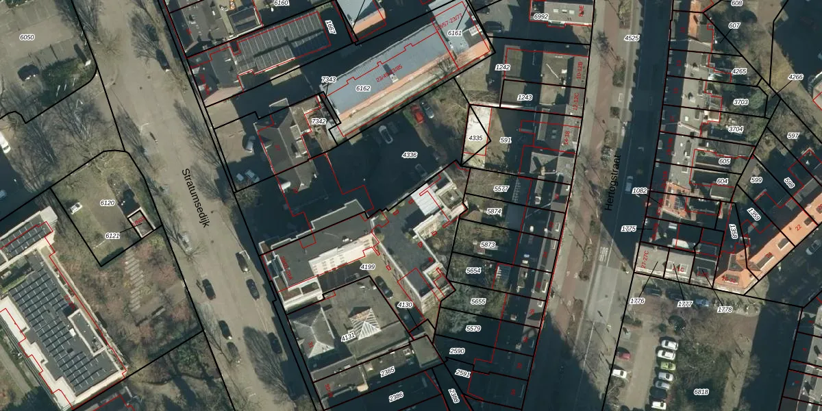 Stratumsedijk 29-39 is gelegen op kadastraal perceel STM00E4199. Deze kadastrale aanduiding is uniek en wordt gebruikt door het Kadaster om eigendomsrechten en andere zakelijke rechten vast te leggen. Het perceel maakt onderdeel uit van de kadastrale gemeente Stratum.