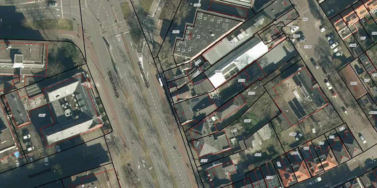 Stratumsedijk 47-B is gelegen op kadastraal perceel STM00E6666. Deze kadastrale aanduiding is uniek en wordt gebruikt door het Kadaster om eigendomsrechten en andere zakelijke rechten vast te leggen. Het perceel maakt onderdeel uit van de kadastrale gemeente Stratum.