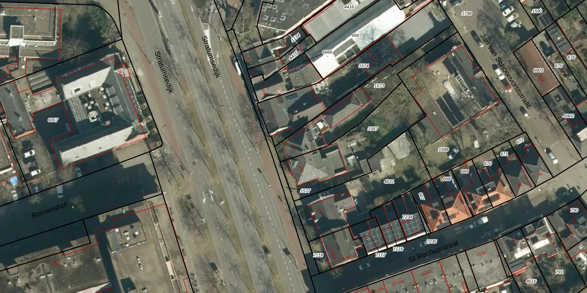 Stratumsedijk 53 is gelegen op kadastraal perceel STM00E1573. Deze kadastrale aanduiding is uniek en wordt gebruikt door het Kadaster om eigendomsrechten en andere zakelijke rechten vast te leggen. Het perceel maakt onderdeel uit van de kadastrale gemeente Stratum.