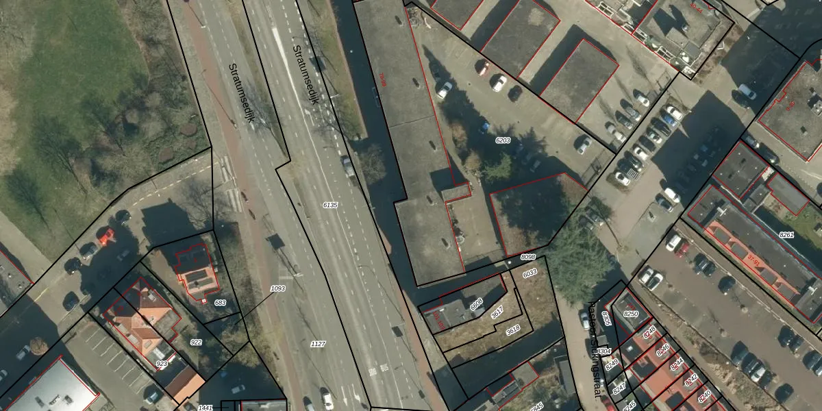 Stratumsedijk 91-B is gelegen op kadastraal perceel STM00D6203. Deze kadastrale aanduiding is uniek en wordt gebruikt door het Kadaster om eigendomsrechten en andere zakelijke rechten vast te leggen. Het perceel maakt onderdeel uit van de kadastrale gemeente Stratum.