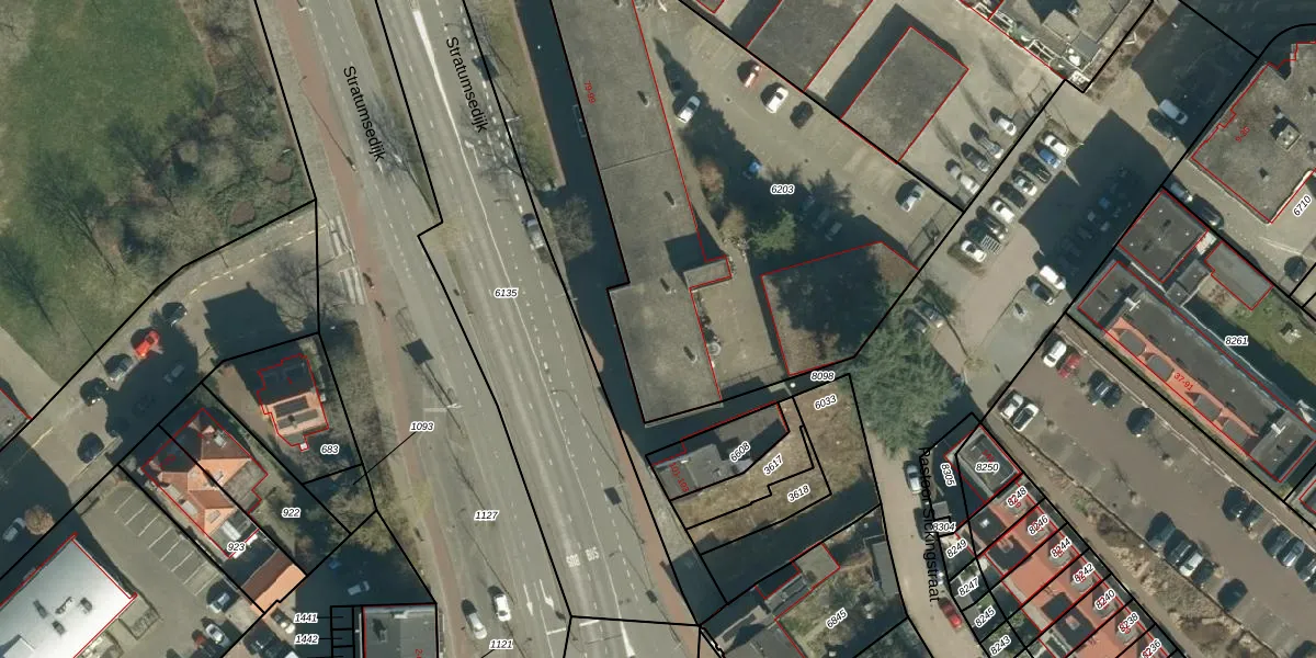 Stratumsedijk 97-B is gelegen op kadastraal perceel STM00D6203. Deze kadastrale aanduiding is uniek en wordt gebruikt door het Kadaster om eigendomsrechten en andere zakelijke rechten vast te leggen. Het perceel maakt onderdeel uit van de kadastrale gemeente Stratum.