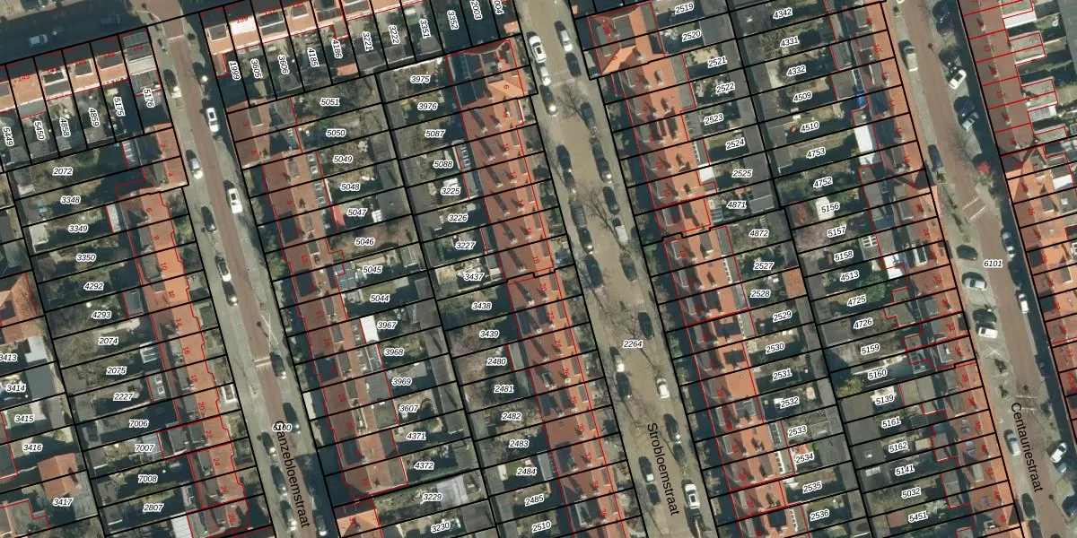 Gebruik de zoekbalk of klik op een perceel voor informatie over de adressen binnen dit perceel.