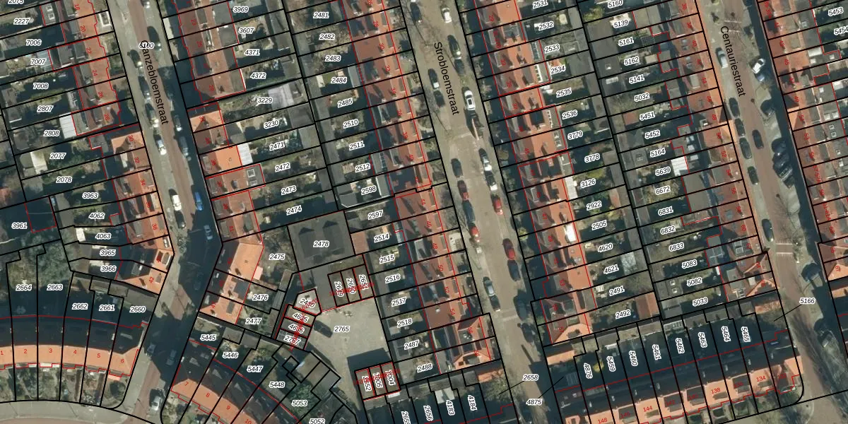 Strobloemstraat 44 is gelegen op kadastraal perceel STM00D2597. Deze kadastrale aanduiding is uniek en wordt gebruikt door het Kadaster om eigendomsrechten en andere zakelijke rechten vast te leggen. Het perceel maakt onderdeel uit van de kadastrale gemeente Stratum.