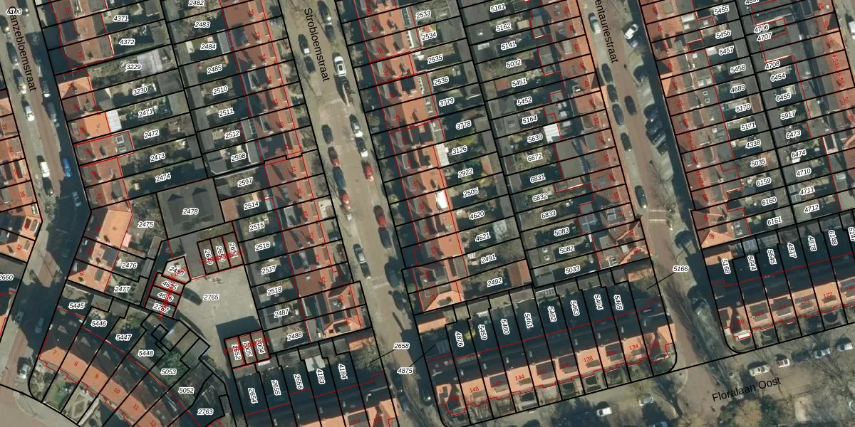 Strobloemstraat 49 is gelegen op kadastraal perceel STM00D2505. Deze kadastrale aanduiding is uniek en wordt gebruikt door het Kadaster om eigendomsrechten en andere zakelijke rechten vast te leggen. Het perceel maakt onderdeel uit van de kadastrale gemeente Stratum.