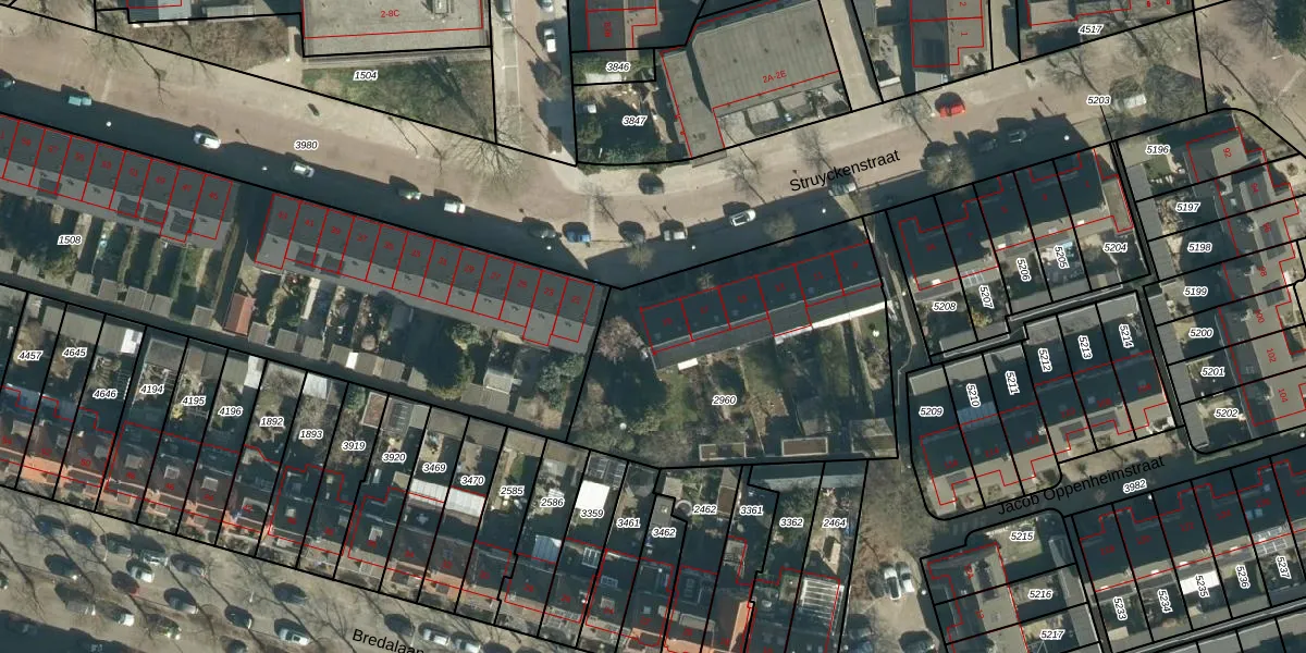 Het perceel waarop Struyckenstraat 19 staat heeft een oppervlakte van 1427 m². Dit is een zeer groot perceel. De perceeloppervlakte wordt geregistreerd door het Kadaster. Gedetailleerde informatie over de maten van dit perceel kunt u vinden in het rapport Kadastrale kaart met maatvoering van Struyckenstraat 19.