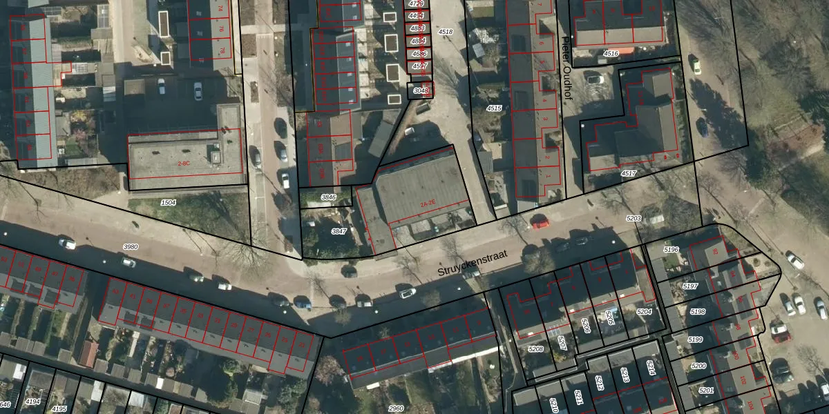 Struyckenstraat 2-C is gelegen op kadastraal perceel STR03C3847. Deze kadastrale aanduiding is uniek en wordt gebruikt door het Kadaster om eigendomsrechten en andere zakelijke rechten vast te leggen. Het perceel maakt onderdeel uit van de kadastrale gemeente Strijp.