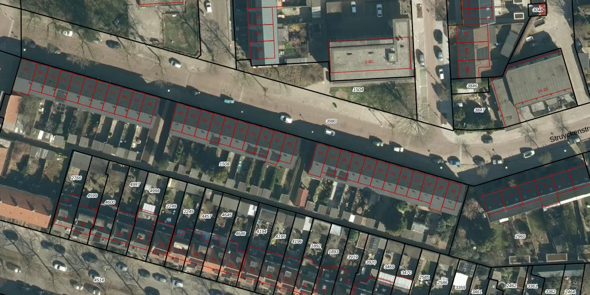 Struyckenstraat 45 is gelegen op kadastraal perceel STR03C1508. Deze kadastrale aanduiding is uniek en wordt gebruikt door het Kadaster om eigendomsrechten en andere zakelijke rechten vast te leggen. Het perceel maakt onderdeel uit van de kadastrale gemeente Strijp.