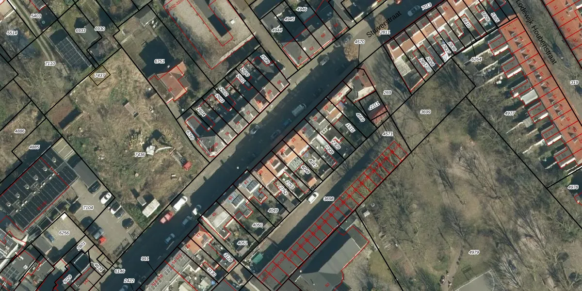 Gebruik de zoekbalk of klik op een perceel voor informatie over de adressen binnen dit perceel.