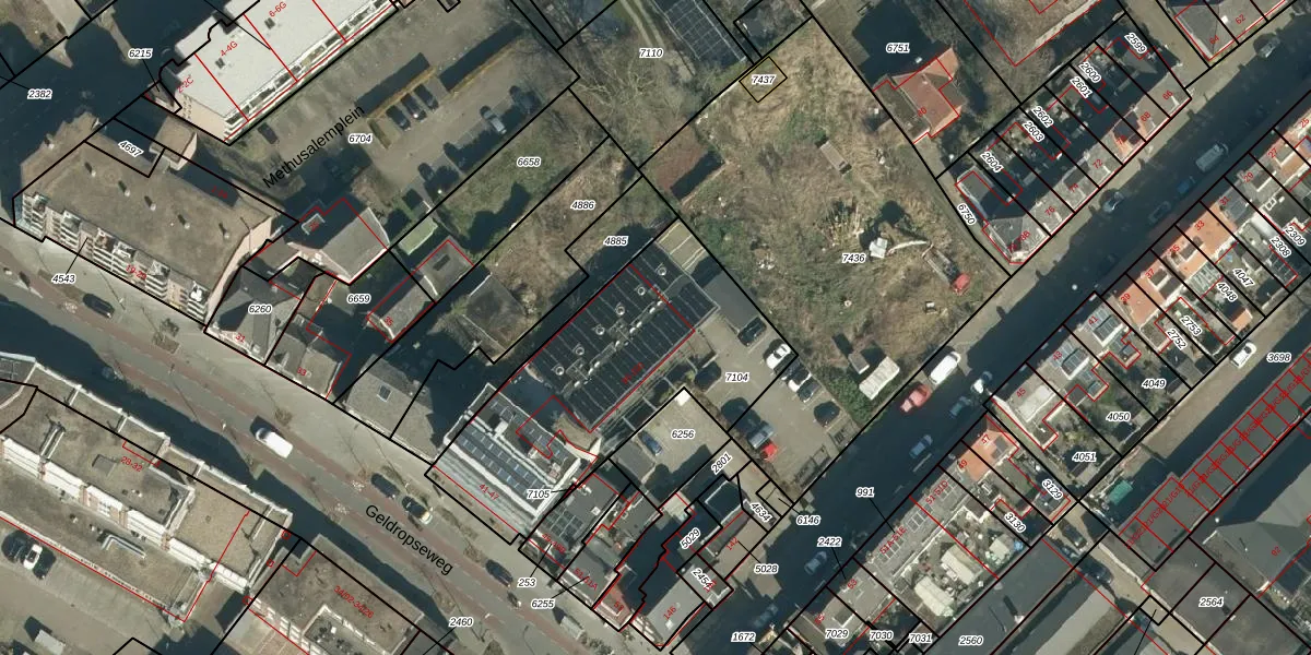 Het adres is gelegen op perceel 7104 in de sectie E en de kadastrale gemeente Stratum. De kadastrale aanduiding is aldus STM00-E-7104. De gemiddelde perceeloppervlakte in de kadastrale gemeente Stratum is 909,21 m². Dit perceel is met zijn 1144 m² dus groter dan gemiddeld. De grootste perceeloppervlakte in de kadastrale gemeente is 92,9 ha. De kleinste oppervlakte bedraagt 0 m². Op het perceel liggen in totaal 10 adressen. De laatste wijziging in het de Basisregistratie Kadaster (BRK) was op 03-10-2018.