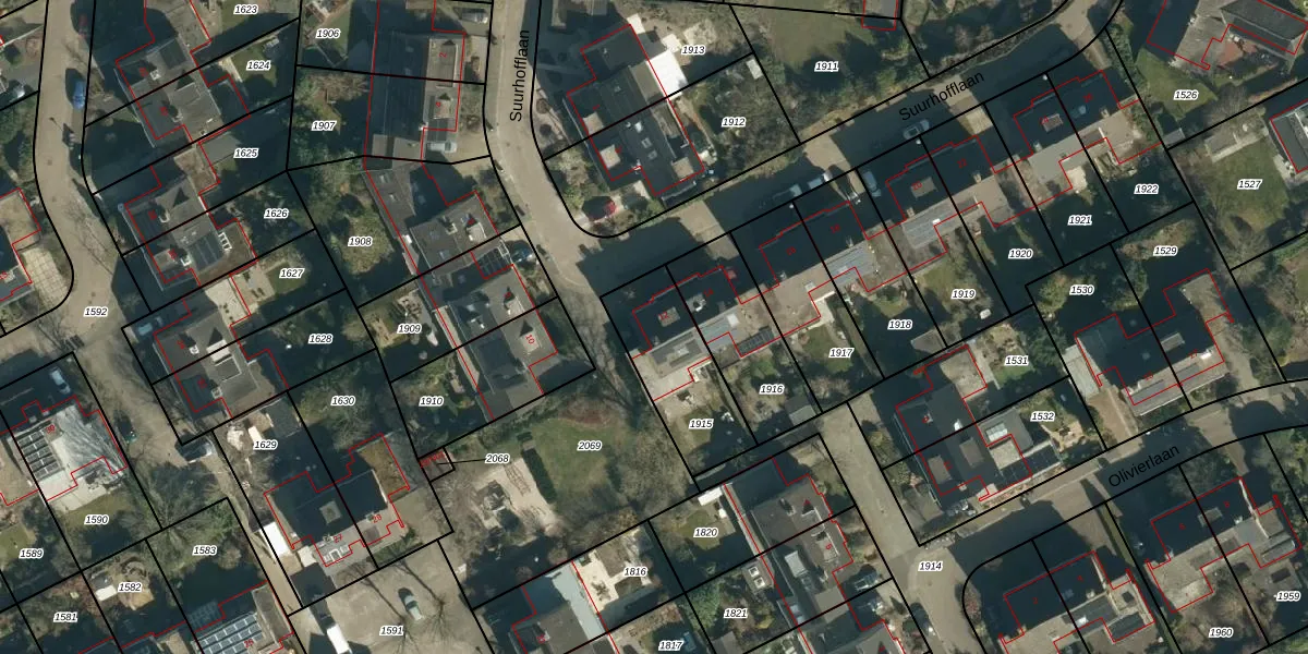Het perceel waarop Suurhofflaan 12 staat heeft een oppervlakte van 345 m². Dit is een groot perceel. De perceeloppervlakte wordt geregistreerd door het Kadaster. Gedetailleerde informatie over de maten van dit perceel kunt u vinden in het rapport Kadastrale kaart met maatvoering van Suurhofflaan 12.