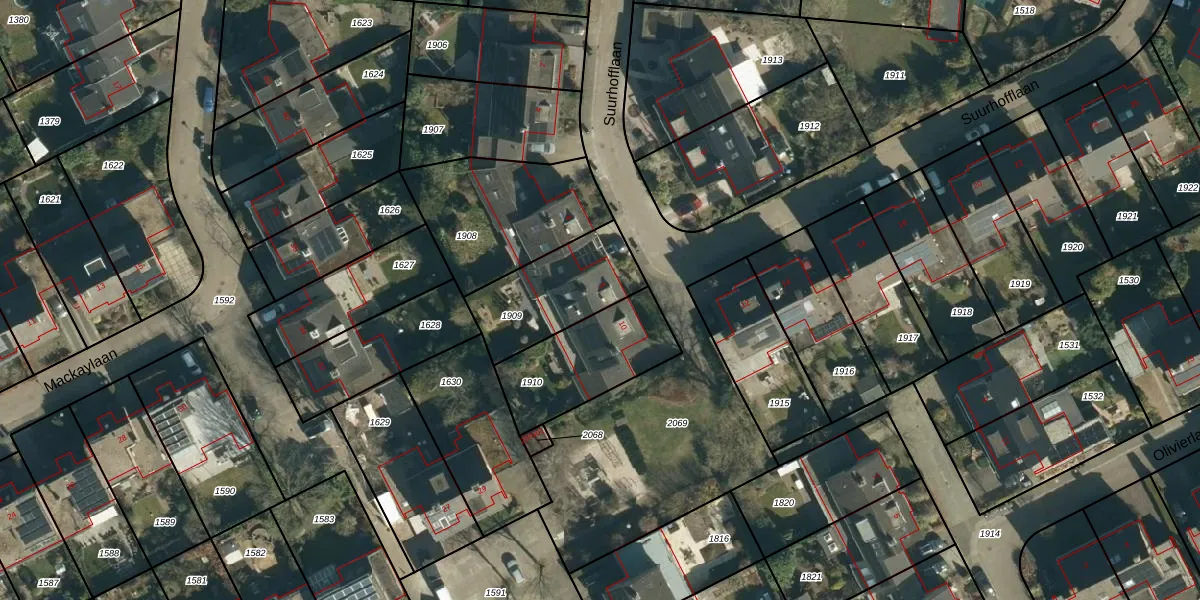 Het perceel waarop Suurhofflaan 8 staat heeft een oppervlakte van 355 m². Dit is een groot perceel. De perceeloppervlakte wordt geregistreerd door het Kadaster. Gedetailleerde informatie over de maten van dit perceel kunt u vinden in het rapport Kadastrale kaart met maatvoering van Suurhofflaan 8.