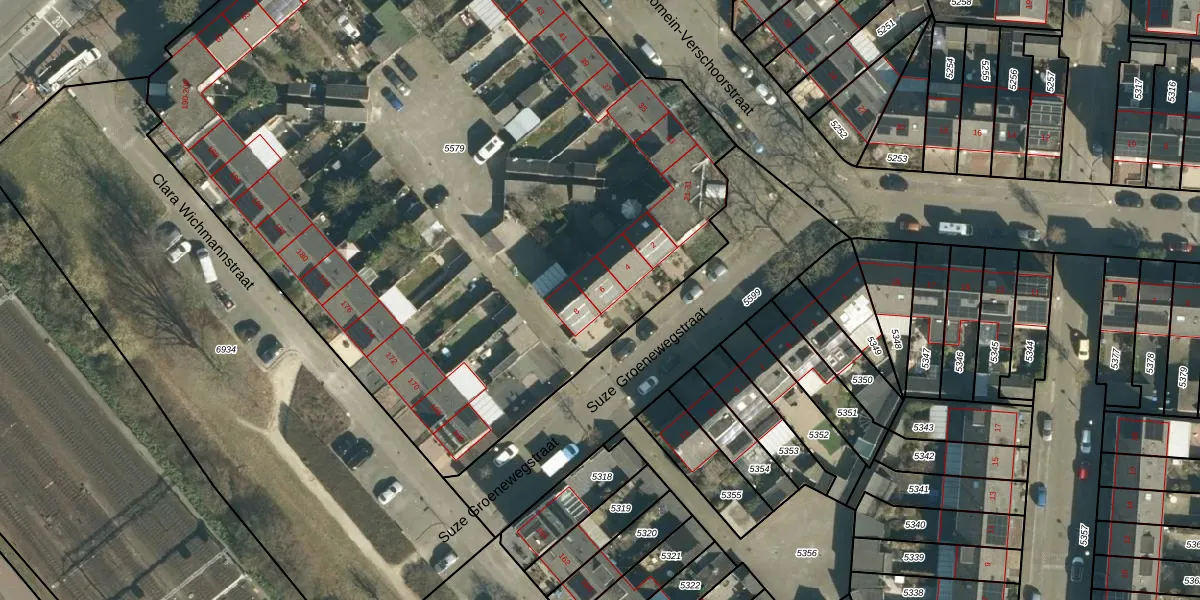 Suze Groenewegstraat 6 is gelegen op kadastraal perceel WSL01G5579. Deze kadastrale aanduiding is uniek en wordt gebruikt door het Kadaster om eigendomsrechten en andere zakelijke rechten vast te leggen. Het perceel maakt onderdeel uit van de kadastrale gemeente Woensel.