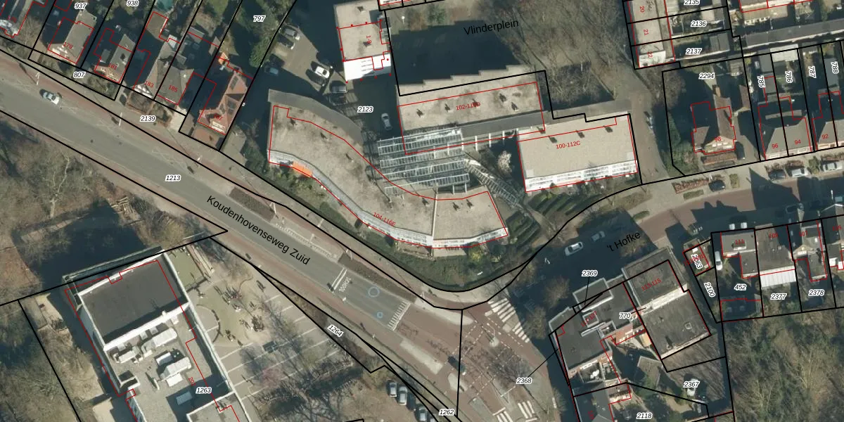 't Hofke 104-E is gelegen op kadastraal perceel TGR00G2123. Deze kadastrale aanduiding is uniek en wordt gebruikt door het Kadaster om eigendomsrechten en andere zakelijke rechten vast te leggen. Het perceel maakt onderdeel uit van de kadastrale gemeente Tongelre.