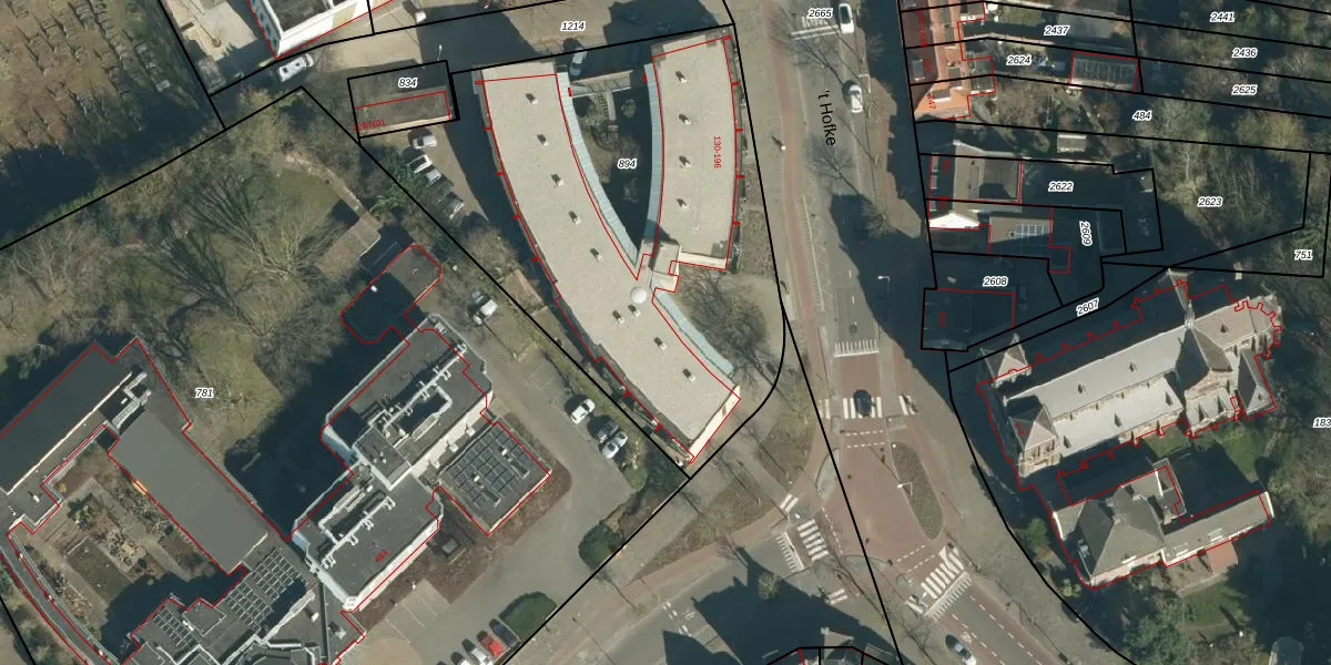 Het perceel waarop 't Hofke 134 staat heeft een oppervlakte van 2476 m². Dit is een zeer groot perceel. De perceeloppervlakte wordt geregistreerd door het Kadaster. Gedetailleerde informatie over de maten van dit perceel kunt u vinden in het rapport Kadastrale kaart met maatvoering van 't Hofke 134.