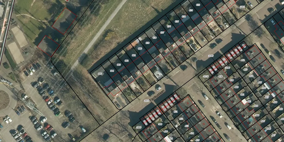 Tacituslaan 9 is gelegen op kadastraal perceel WSL01P681. Deze kadastrale aanduiding is uniek en wordt gebruikt door het Kadaster om eigendomsrechten en andere zakelijke rechten vast te leggen. Het perceel maakt onderdeel uit van de kadastrale gemeente Woensel.