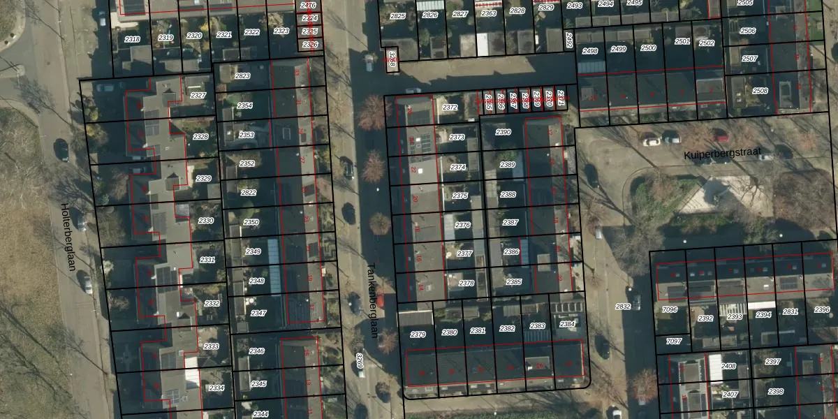 Gebruik de zoekbalk of klik op een perceel voor informatie over de adressen binnen dit perceel.