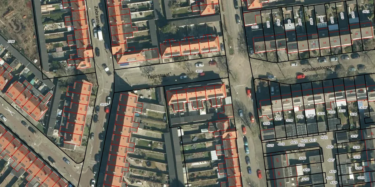 Tapirstraat 7 is gelegen op kadastraal perceel STM00F3403. Deze kadastrale aanduiding is uniek en wordt gebruikt door het Kadaster om eigendomsrechten en andere zakelijke rechten vast te leggen. Het perceel maakt onderdeel uit van de kadastrale gemeente Stratum.