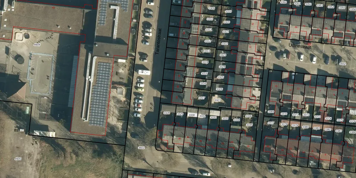 Tarantostraat 36 is gelegen op kadastraal perceel WSL01C3316. Deze kadastrale aanduiding is uniek en wordt gebruikt door het Kadaster om eigendomsrechten en andere zakelijke rechten vast te leggen. Het perceel maakt onderdeel uit van de kadastrale gemeente Woensel.