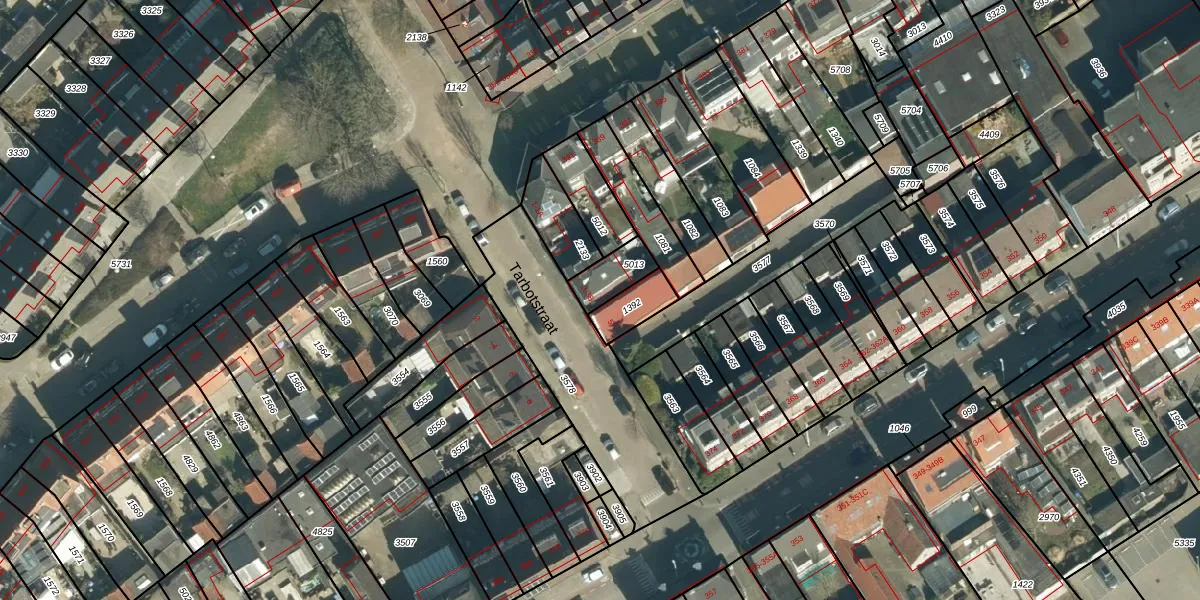 Het perceel waarop Tarbotstraat 3-B staat heeft een oppervlakte van 92 m². Dit is een klein perceel. De perceeloppervlakte wordt geregistreerd door het Kadaster. Gedetailleerde informatie over de maten van dit perceel kunt u vinden in het rapport Kadastrale kaart met maatvoering van Tarbotstraat 3-B.
