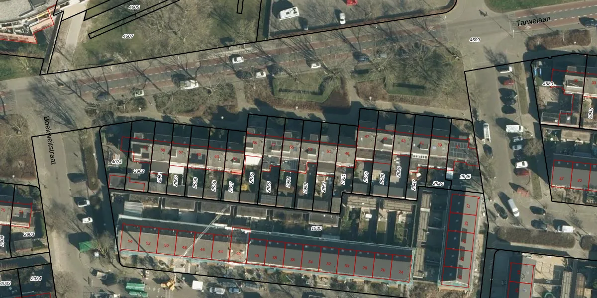 Tarwelaan 55 is gelegen op kadastraal perceel WSL01C2954. Deze kadastrale aanduiding is uniek en wordt gebruikt door het Kadaster om eigendomsrechten en andere zakelijke rechten vast te leggen. Het perceel maakt onderdeel uit van de kadastrale gemeente Woensel.